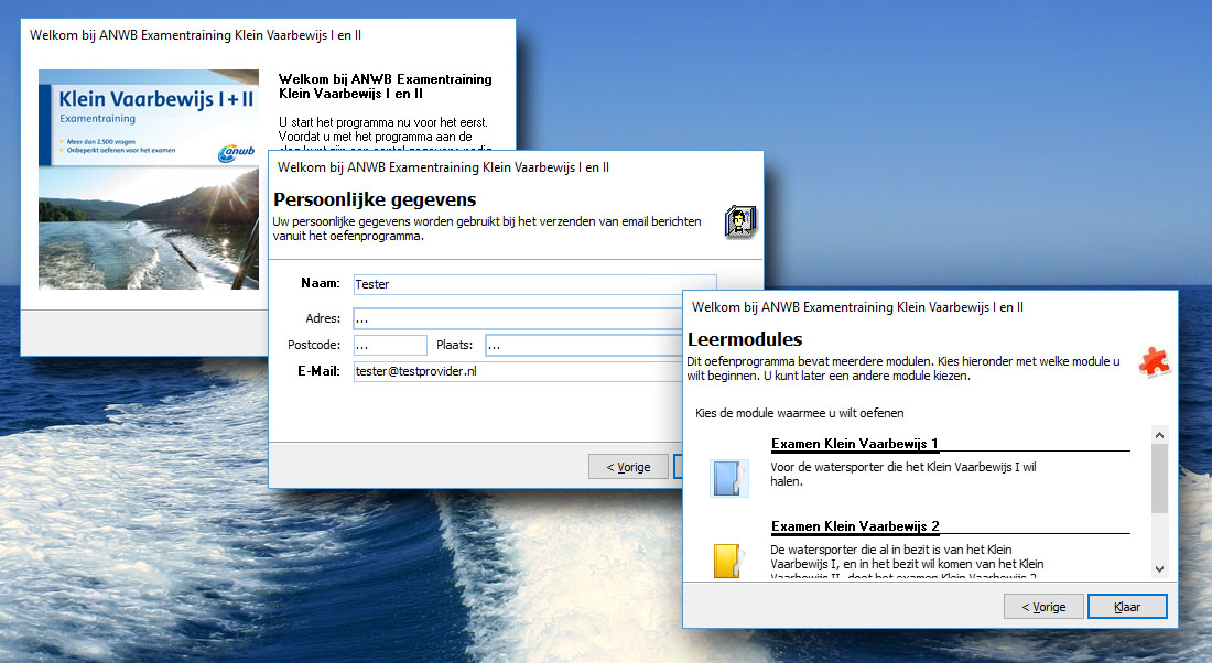 Daarna moet u een module kiezen. Er is een module voor elk examen dat u kunt doen; examen Klein Vaarbewijs 1, examen Klein Vaarbewijs 2 en examen Klein Vaarbewijs 1 en 2 als u deze in één keer wilt doen. Klik op het mapje van de module om deze te selecteren. Uw keuze kunt u later altijd weer veranderen.