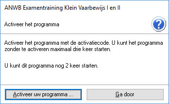 Hierna start het programma op met de module die u heeft gekozen. Na enkele seconden zal het programma u vragen om u te registreren en de licentie te activeren. Dat hoeft u niet meteen te doen. U mag het programma drie keer opstarten, daarna moet u registreren en activeren om het programma te blijven gebruiken. Voor de registratie en het activeren moet u een internetverbinding hebben. Als uw pc niet altijd verbonden is met het internet moet u daar rekening mee houden op het moment dat u er voor kiest om niet meteen de registratie te doen. Na drie keer opstarten is de proefperiode definitief voorbij en kunt u pas weer verder als u internet heeft. Een geregistreerde en geactiveerde versie heeft geen internet nodig om te werken.