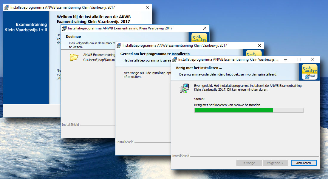 Als de installatie succesvol is verlopen staat er een nieuwe icoon 'Examentraining Klein Vaarbewijs' op het bureaublad van Windows. Dubbelklik op deze icoon om het programma te starten.